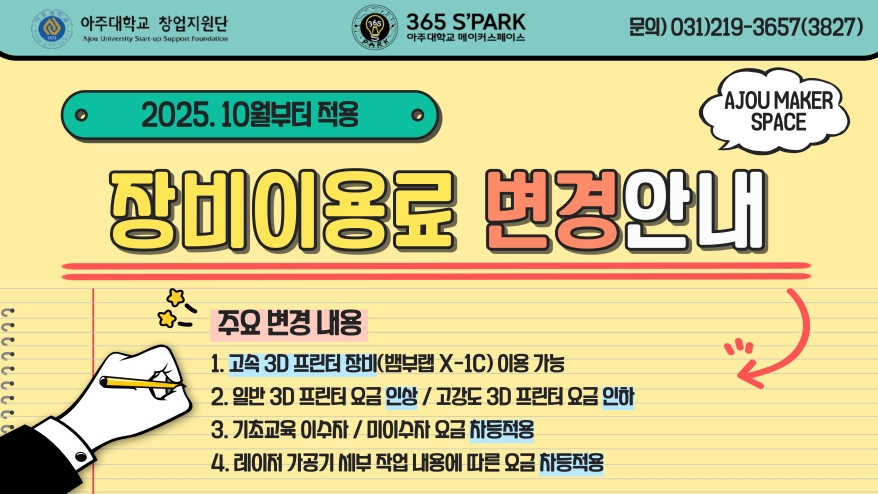 [메이커스페이스] '2025 장비이용료 변경 안내