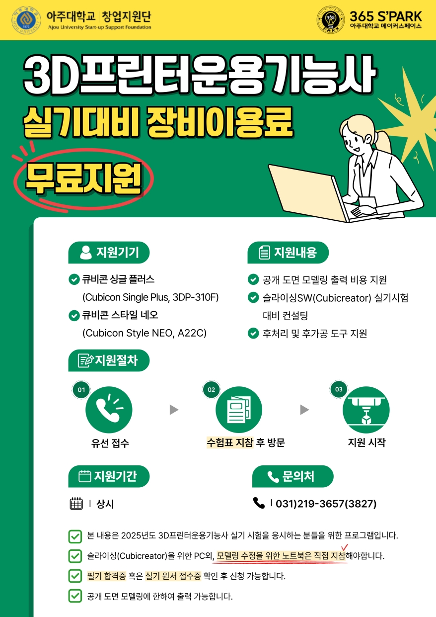 [메이커스페이스] 3D프린터운용기능사 실기 대비 출력 지원 안내(상시)