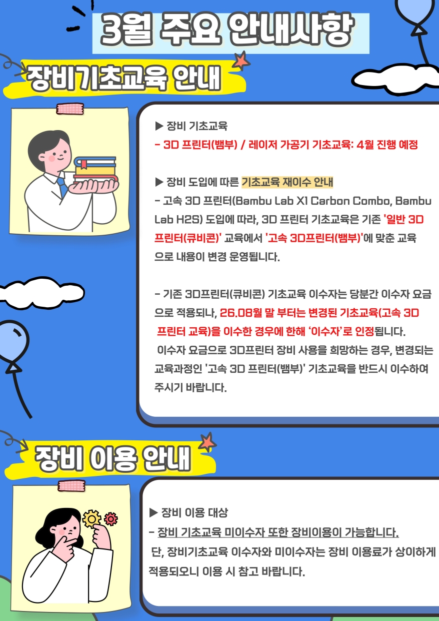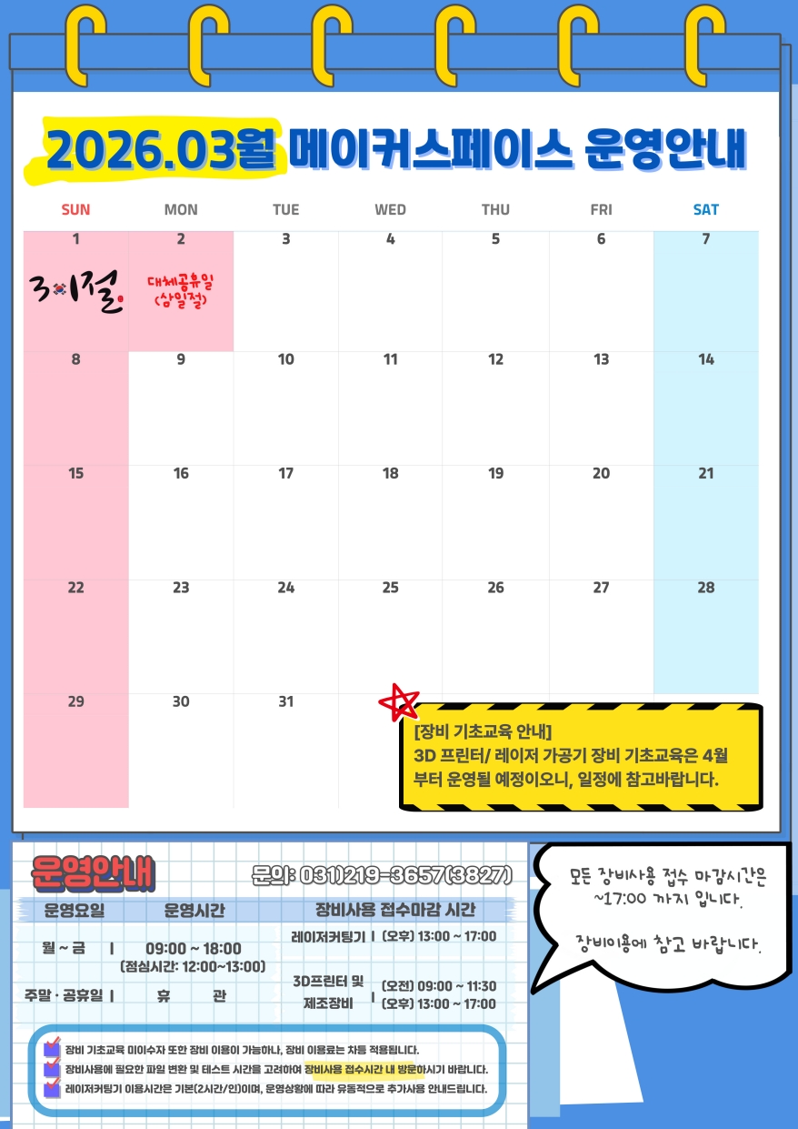 [메이커스페이스] '26.03월 운영 안내