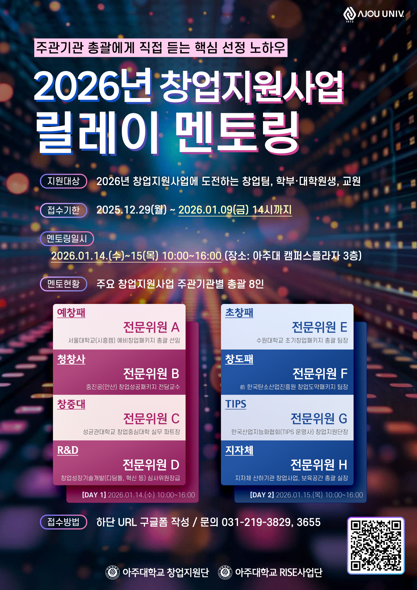 ○ 문의: 아주대학교 창업지원팀(031-219-3655)