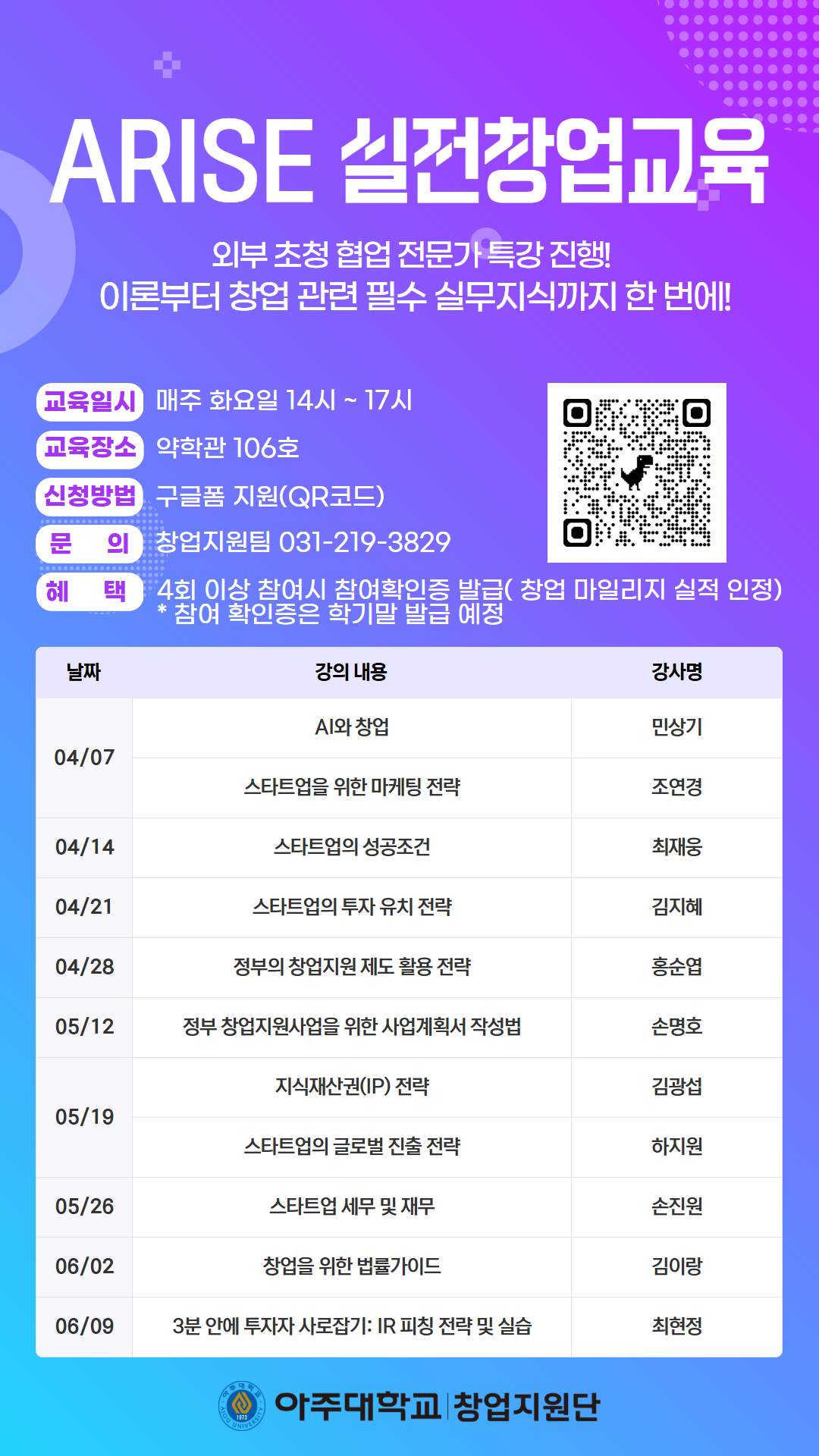 - 창업에 관심 있는 아주대학교 학부 및 석·박사 재학생 포함 재적생